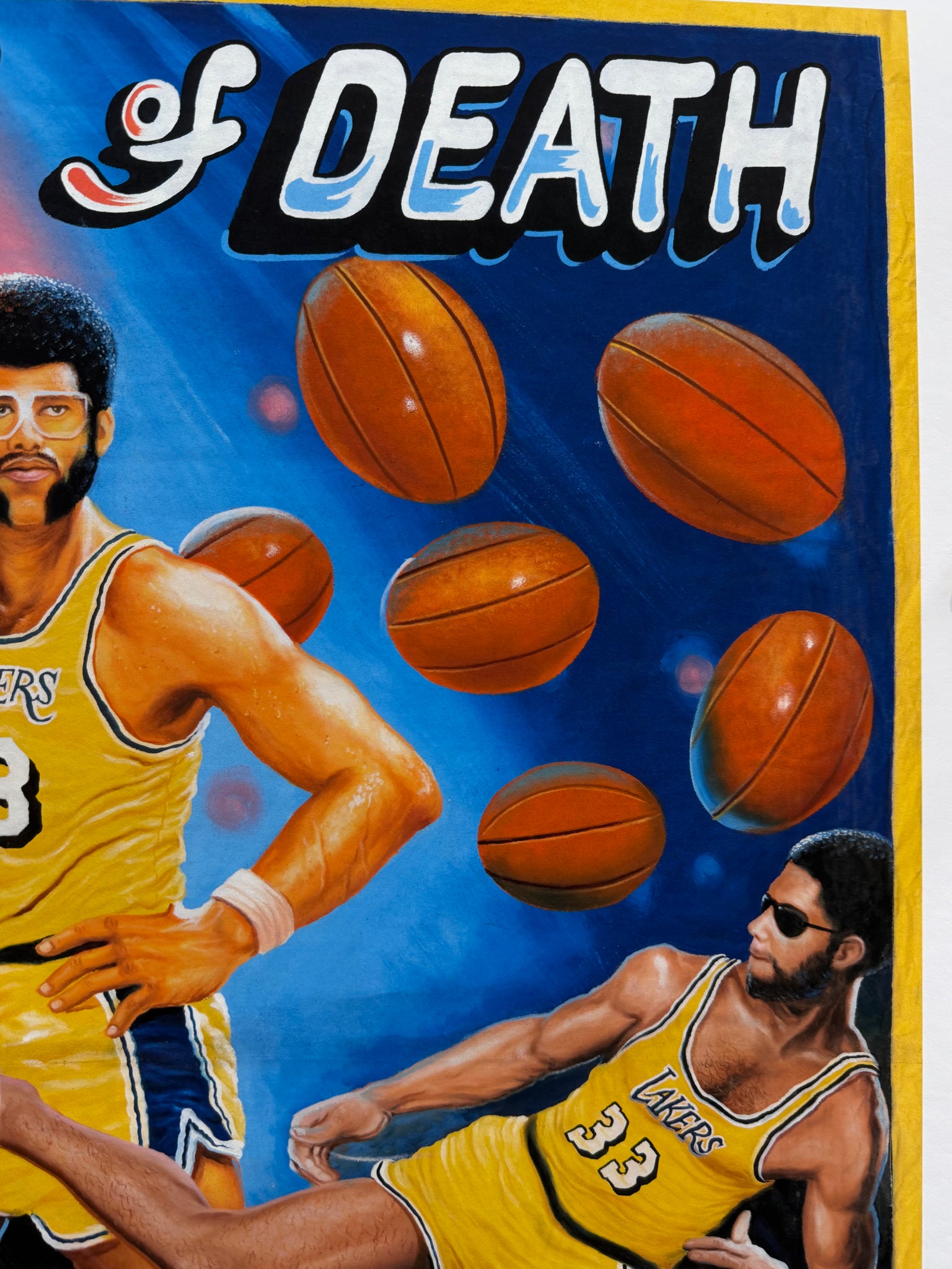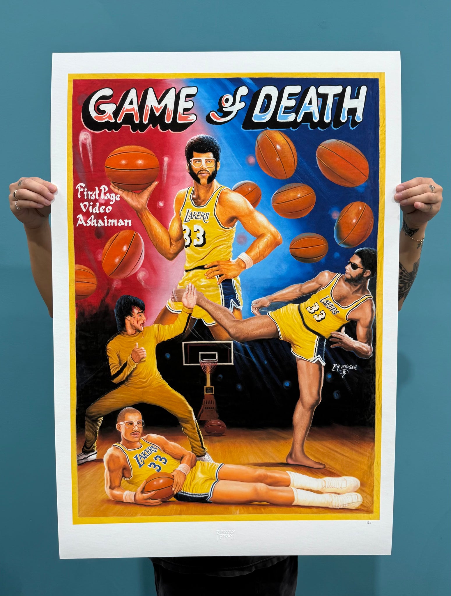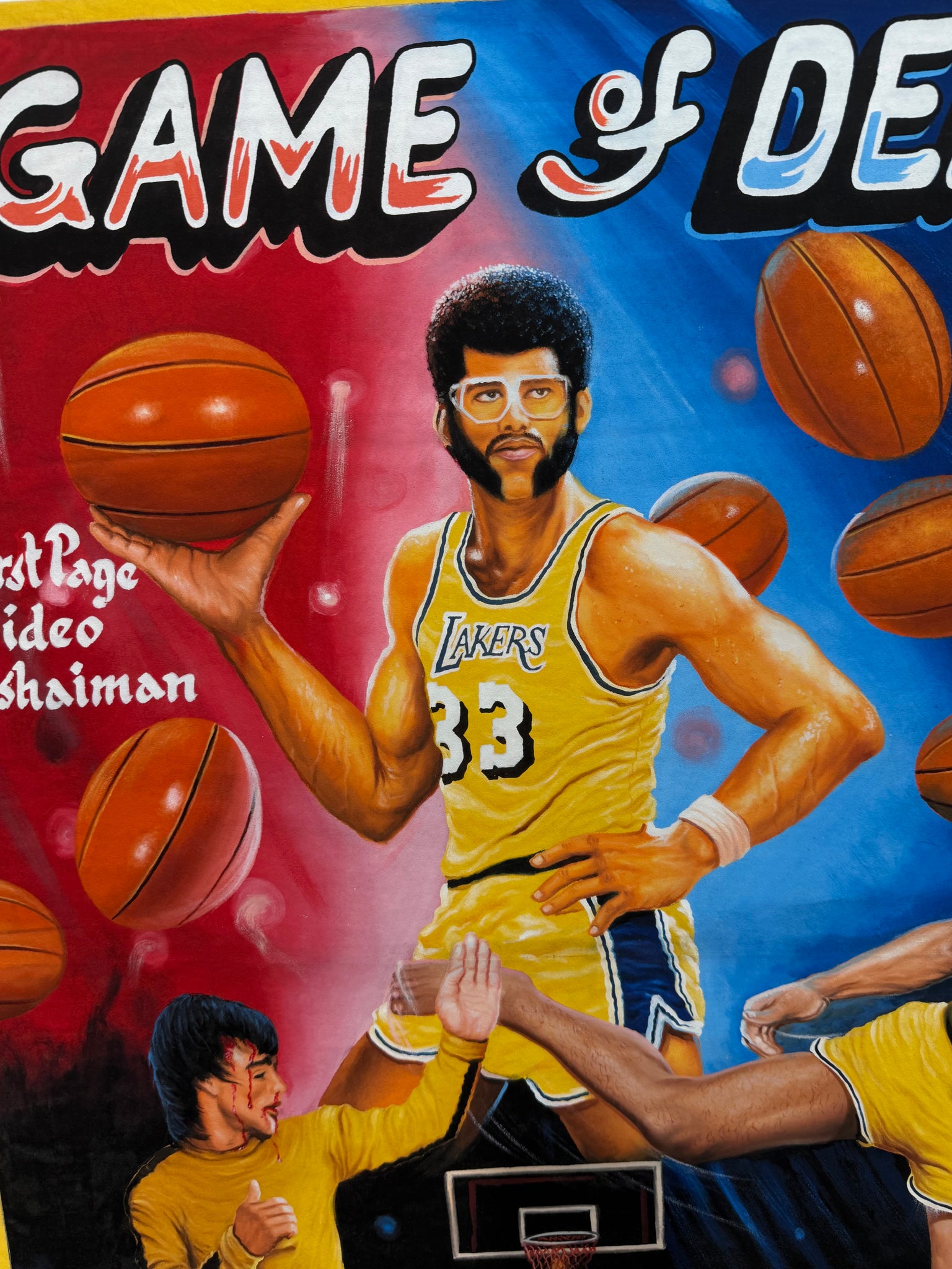 The great Ghanaian artist Stoger’s incredible version of Game of Death featuring Kareem in full Lakers gear & Bruce Lee ✨ Our 147th print release with Static Medium is a sight to behold!