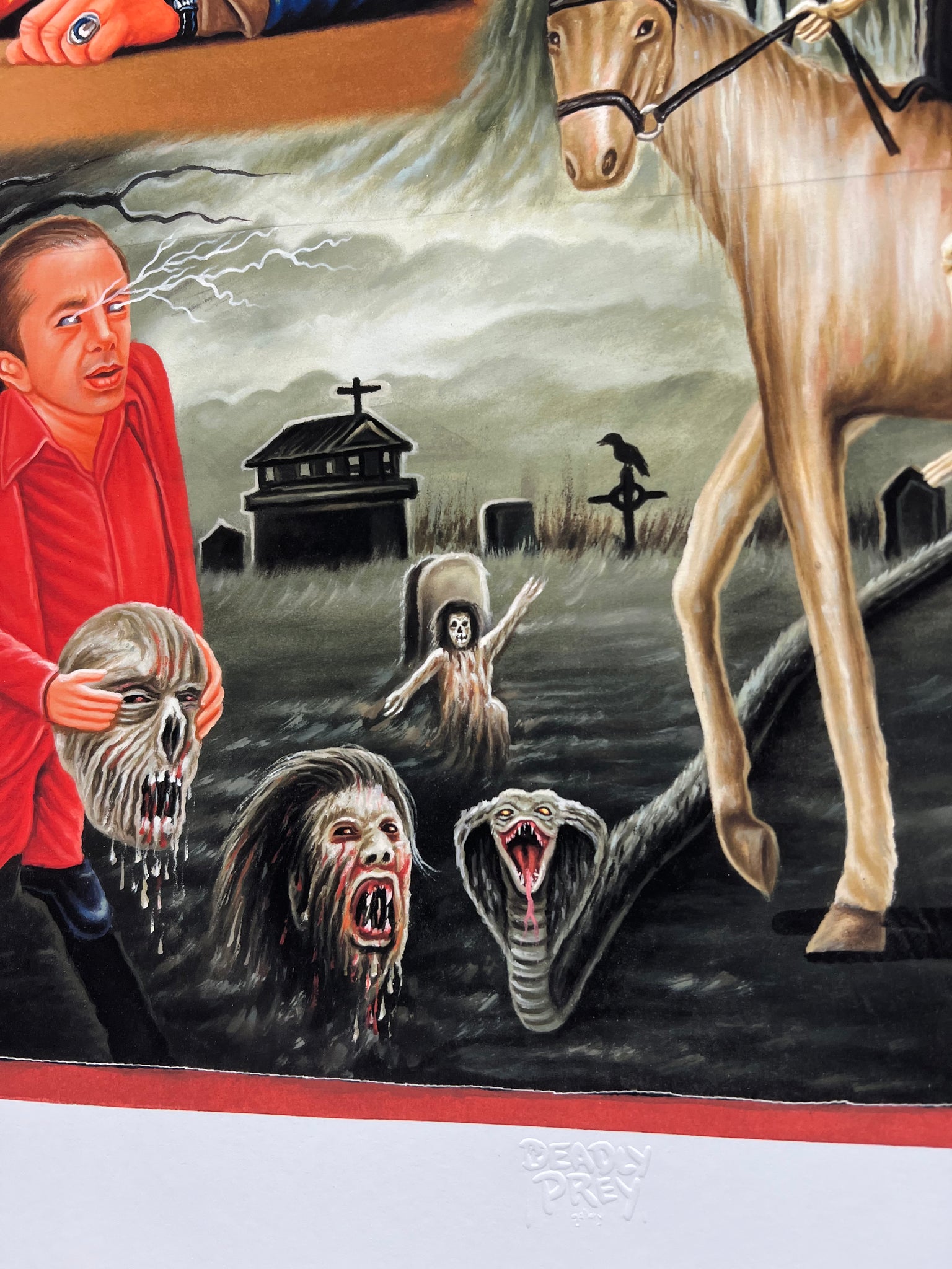 Here’s some details on the nicest prints in existence: Archival Giclée Prints on Cotton Rag Paper (290 GSM). Each measures 24x36” (61x92 cm), hand numbered and embossed with the Deadly Prey Logo in a limited edition of 25. Photographed and printed at Static Medium in LA. Every two weeks on Friday we release a new limited edition print. Once they’re gone they are gone!